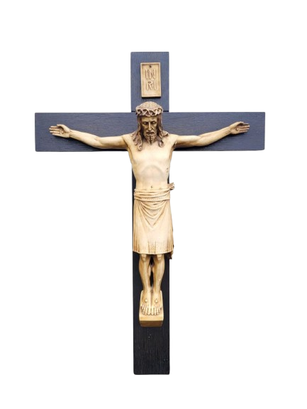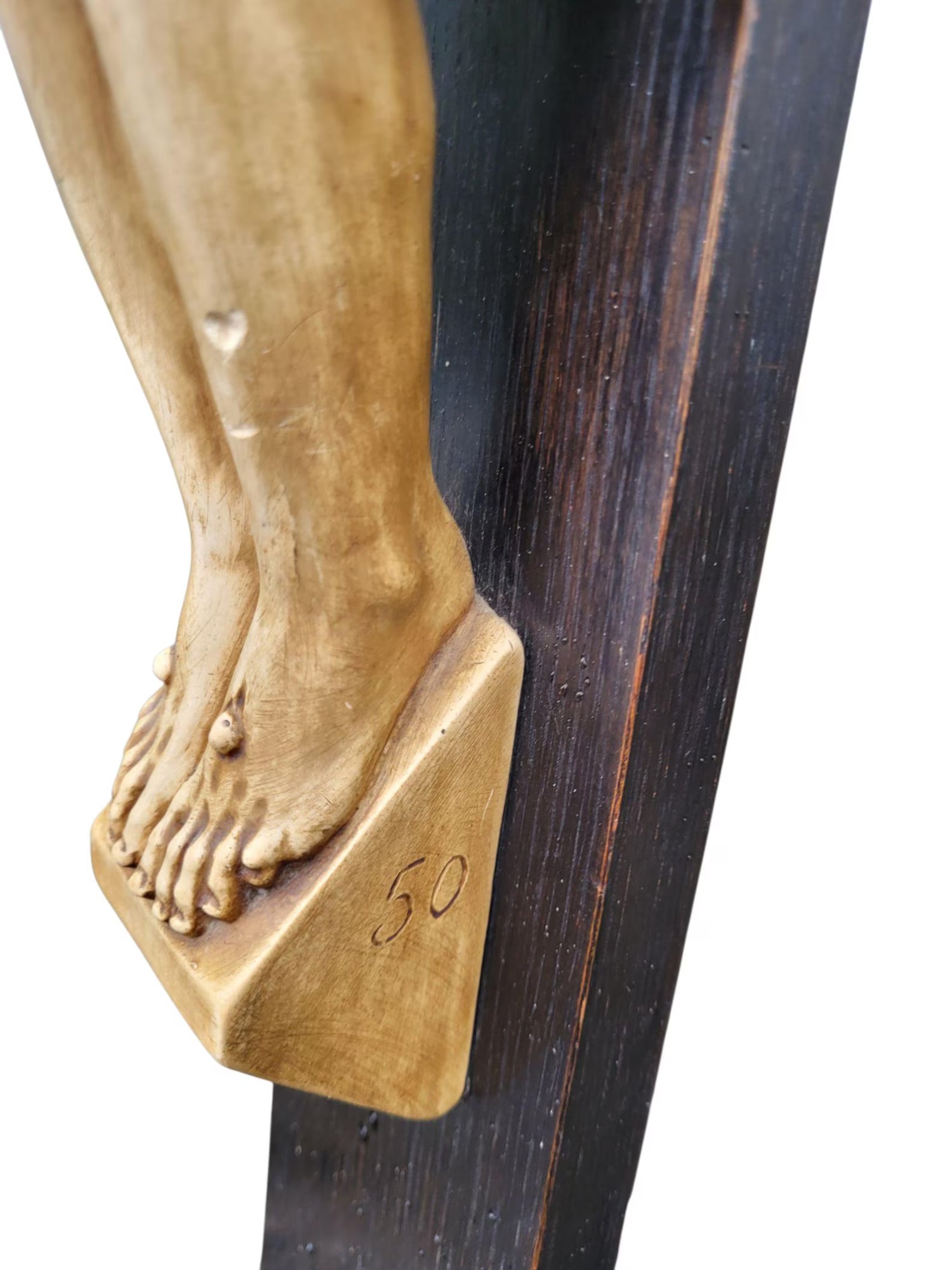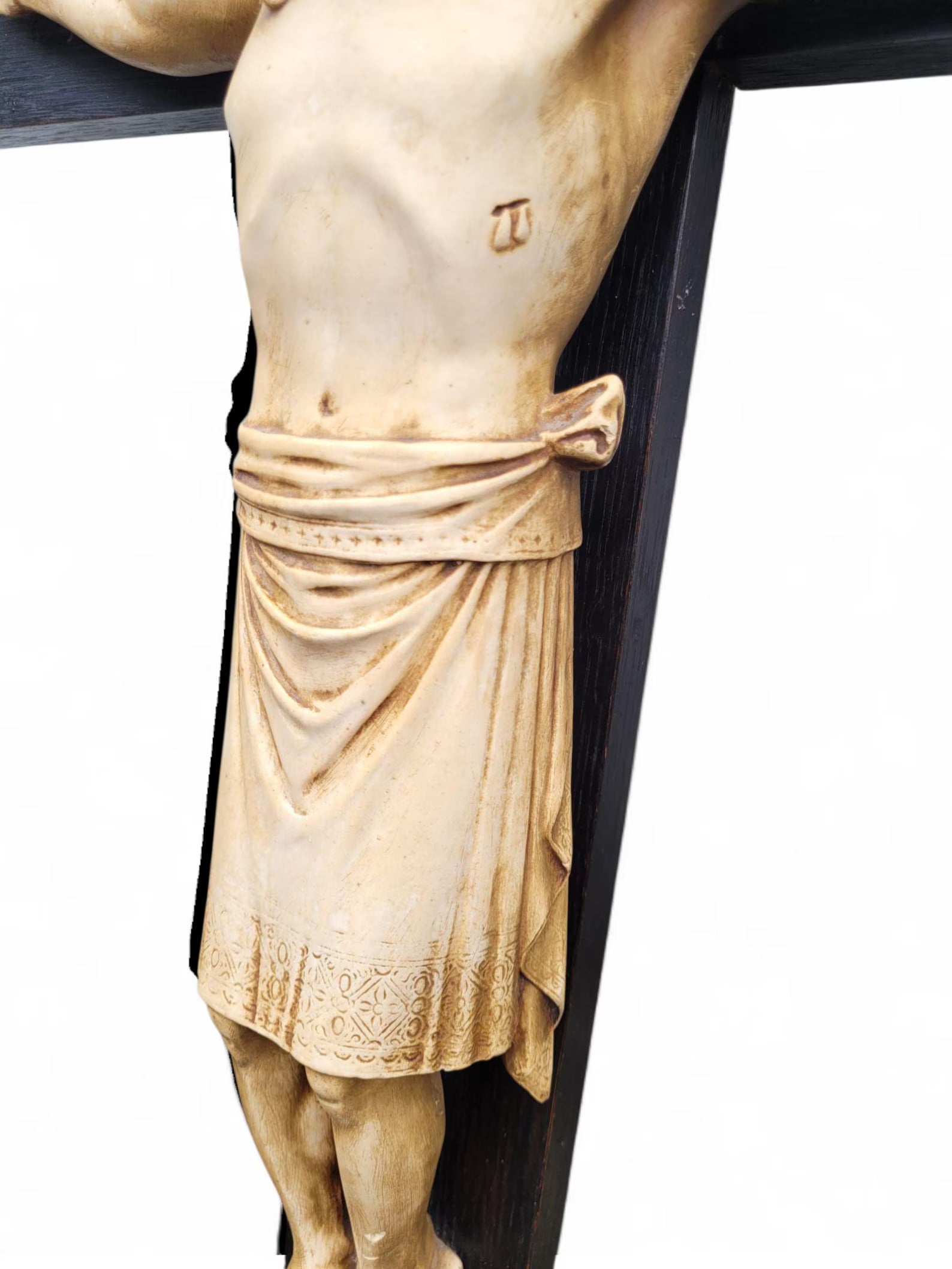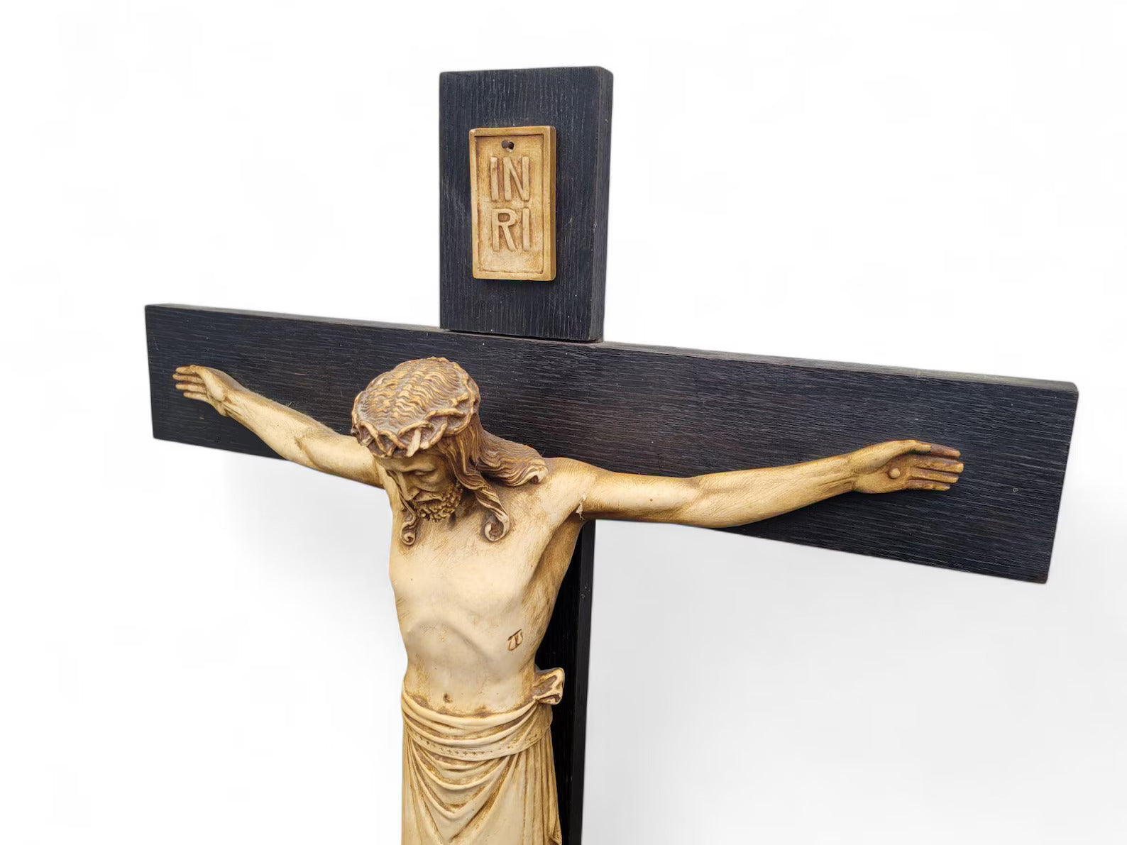 Large Antique 19th Century Jesus Crucifix - Wall hanging Cross - Hand Carved wood - ceramics - porcelain